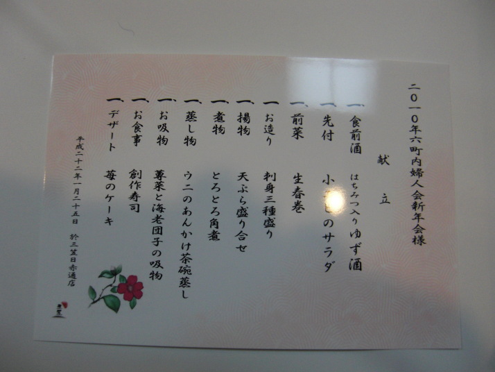 1月25日(月)、いつも元気に活動する6町内婦人会の新年会が、6町内の「三笠」でありました。