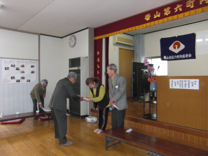 4月生まれが4名、5月生まれの方は1名で、そのうち出席された4月生まれの方3名が記念品をもらわれました。