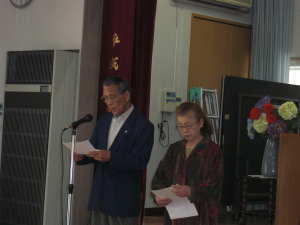 今日は朝方は少し冷えましたが、昼ごろから青空が広がり、すばらしい好天気の中、毎月のお誕生会と変わりなく、たくさんの会員の方が集まられ、21年度の活動報告と会計決算報告、並びに22年度の活動計画と予算について説明を熱心に聞いておられました。
