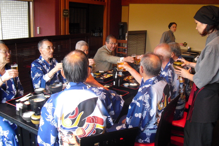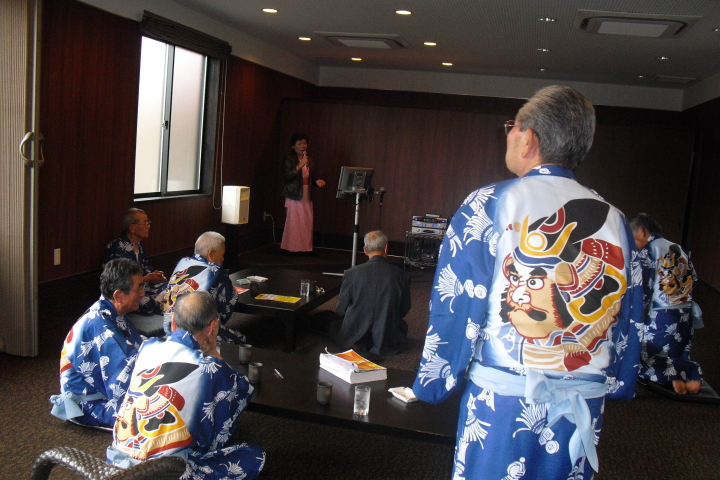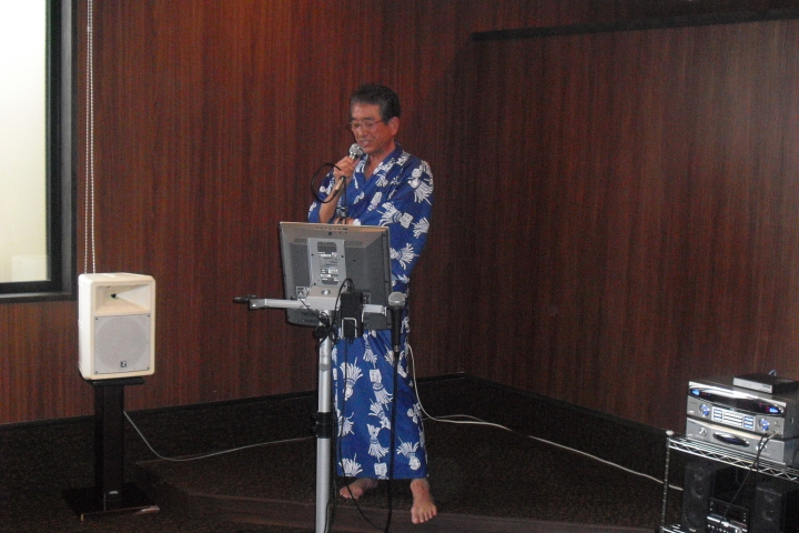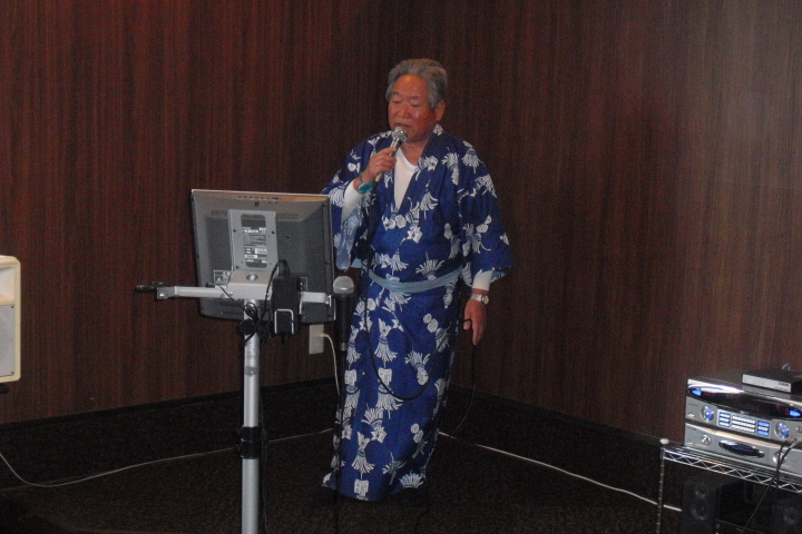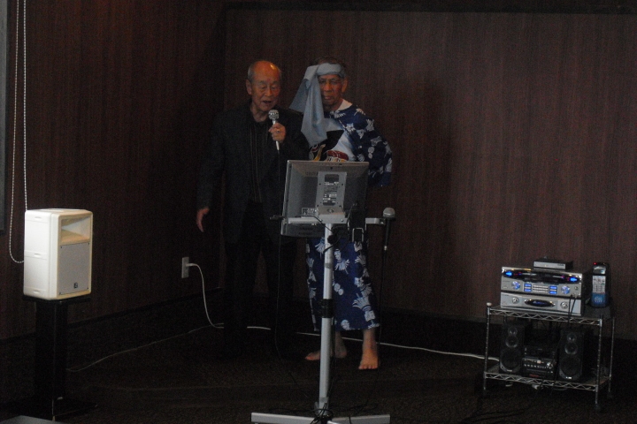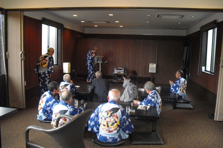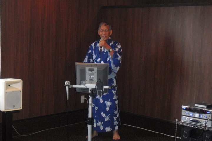 夜の談笑とカラオケが