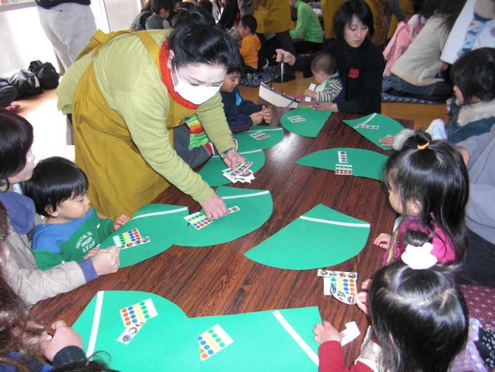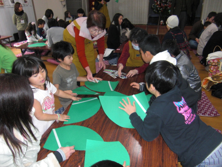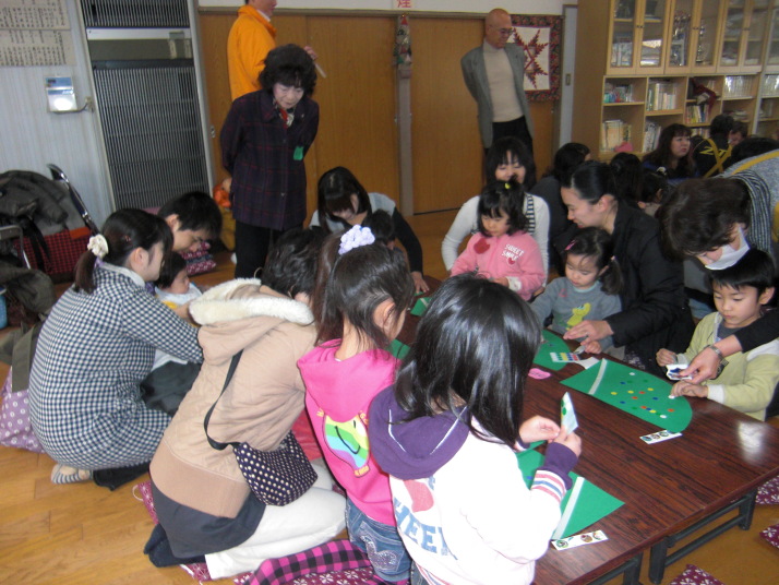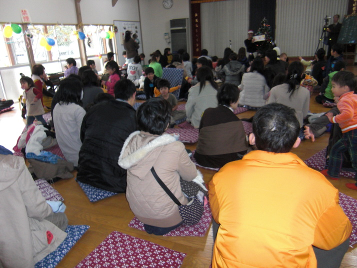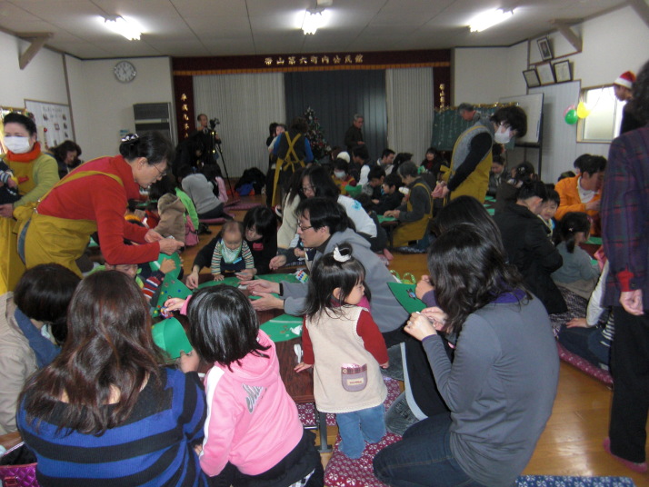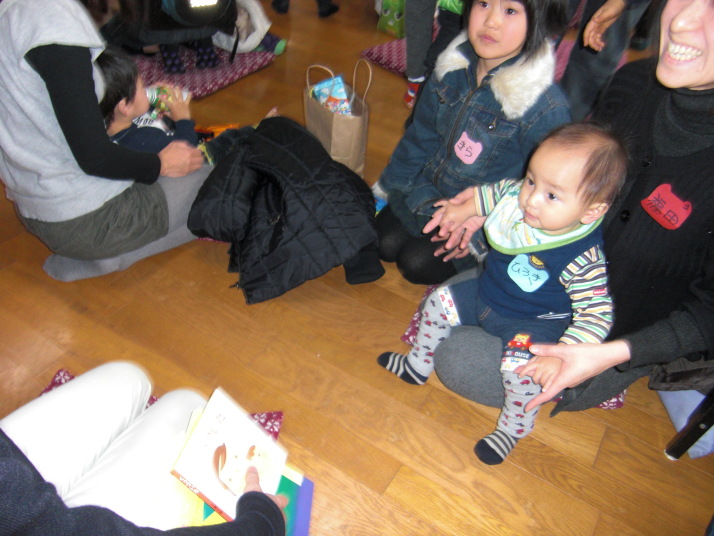 この日のクリスマス会と夏の七夕会には3歳以上のお兄ちゃん、お姉ちゃんの参加もOKということで、会場は大賑わいでした。