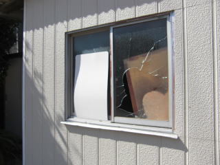 公園でキャッチボールなどしていて、過って、ボールなどが硝子窓に当たったのでしょうか?入れ替えたばかりの硝子が無惨にも割れていました。