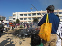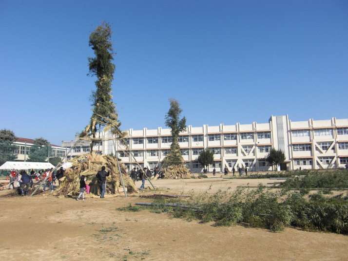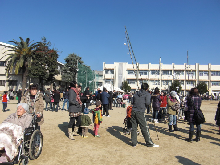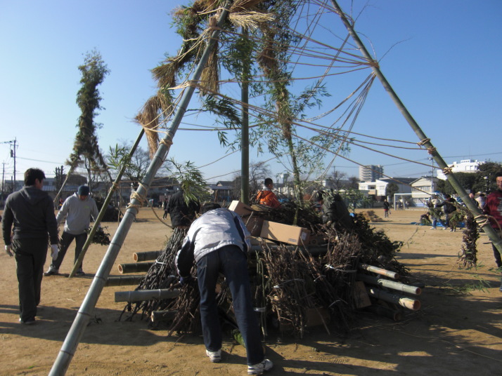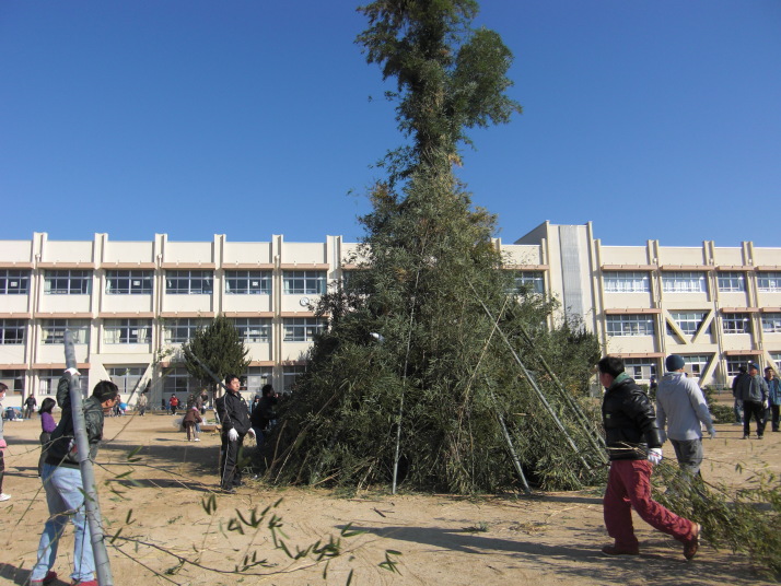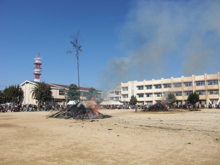 1月17日(日)、帯山小学校の校庭で正月の行事「どんどや」が盛大に開催されました。