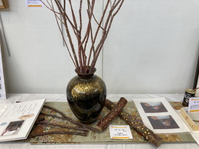 | 竹細工 「木の枝に色付」 堤 征一郎さん | 切り絵 「みんなを幸せに」 中川 真紀子さん |