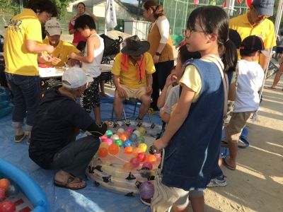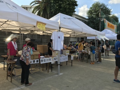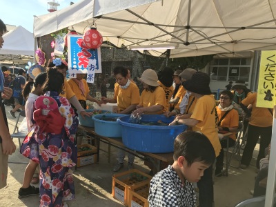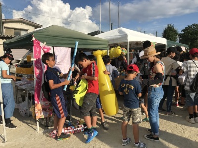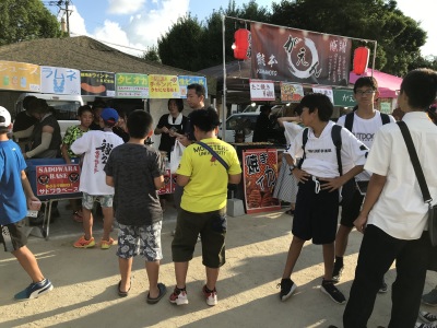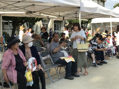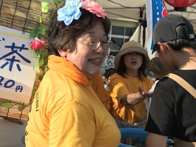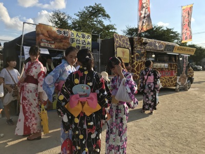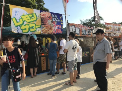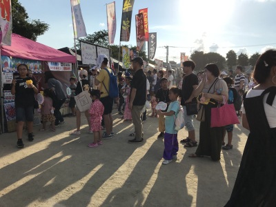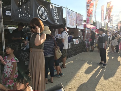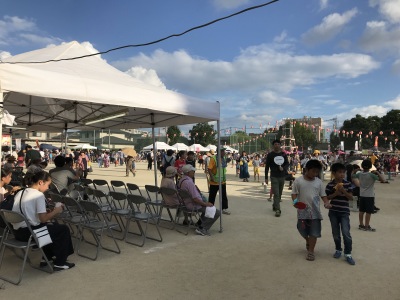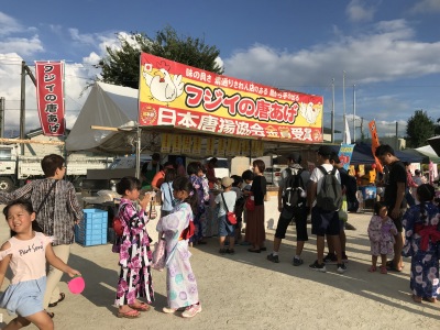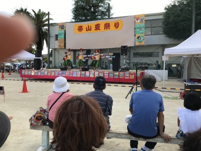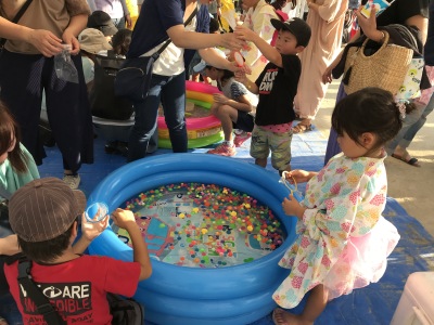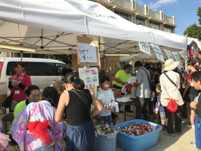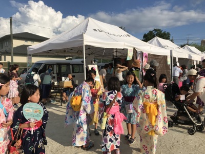 広い小学校の校庭がこの日ばかりは隙間がないように人で埋め尽くされ、周囲は露店でびっしり囲まれ、浴衣姿とうちわの情景はこれぞ日本の夏祭り、そのものでしたね。