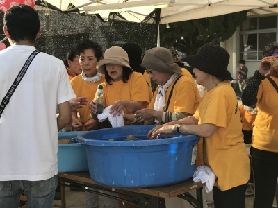 午後4時のオープニングから豪華景品がてんこ盛りの福引抽選会まで、ほんとはぜーんぶ参加したいところでしたがそうもいかず、途中にちょっとだけ大賑わいの会場見物に行きました。