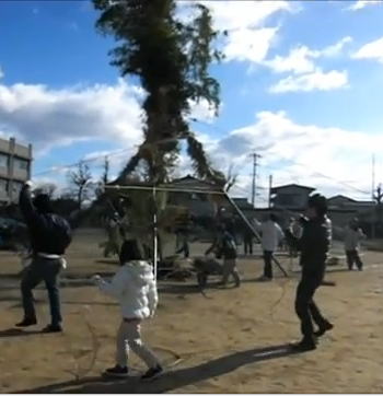 風は冷たかったけど、空はよく晴れて、どんどやの炎と煙は天に向かって燃え上がっていきました。
