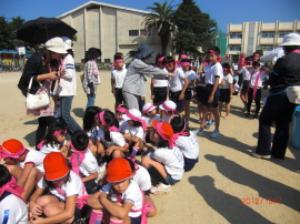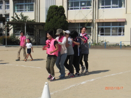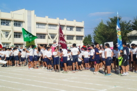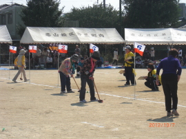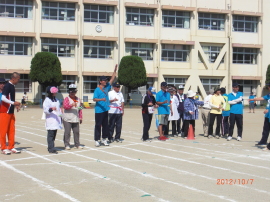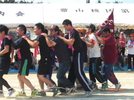 帯山校区は生徒数がとても多く、学校の運動会では生徒の出番が少ないので別に地域の方と小学校の生徒が一緒になって楽しめる運動会をしようという趣旨で生まれた、というお話だったと思います。