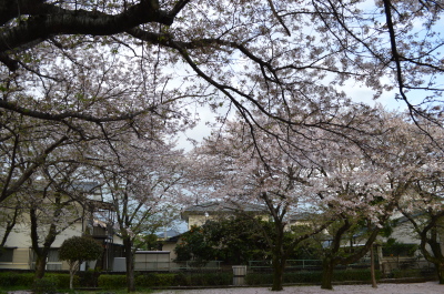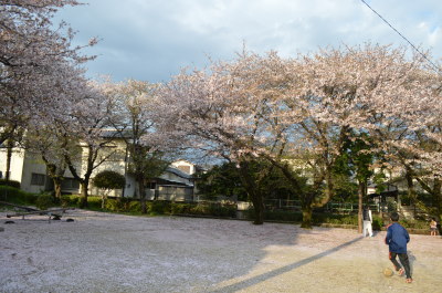 昨日の雨で花が散って、桜の花のじゅうたんになっていました。もったいないですね。
