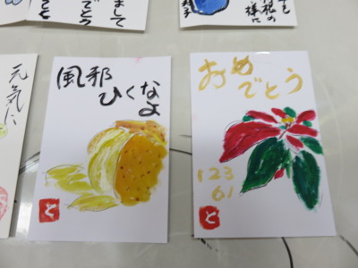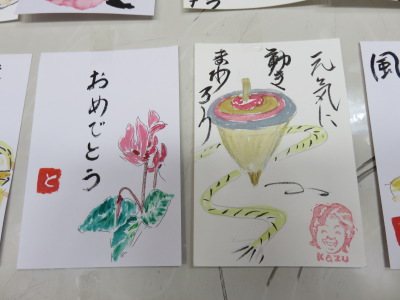 皆さん、2回目とは思えないほど、とてもお上手で、心のこもった年賀状が出来上がっていましたよ。