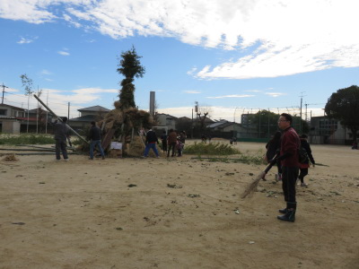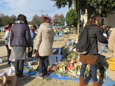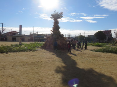 27年1月18日(日)、今年も無病息災を願って帯山小学校でどんどやが開催されました。 よいお天気に恵まれ、たくさんの人が小学校の校庭に集まっておられました。 準備をされている方々を見ているとほんとに大変そうで、ここでも地域の方々の団結を感じました。 燃え盛るどんどやの煙と降ってくる灰をかぶりましたので、今年も無病息災で元気に活動できるものと思います。 ありがとうございました。