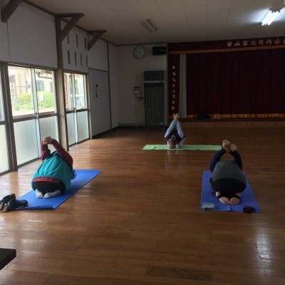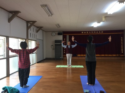 6町内の公民館でヨーガ教室が開かれていると聞いたので見学に行ってみました。