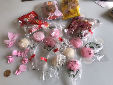ご挨拶があって、間もなく紅白の餅、お金、お菓子などがたくさん投げまかれました。童心に戻って、必死に(?)拾いましたよ。