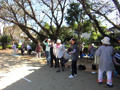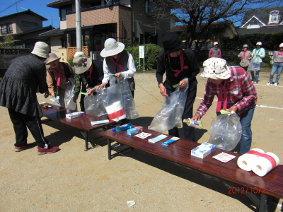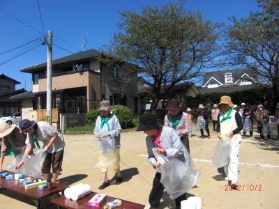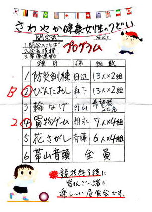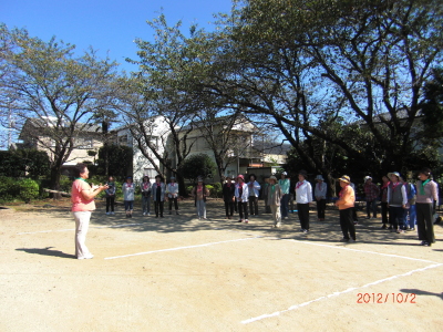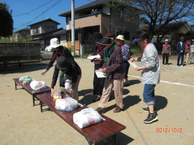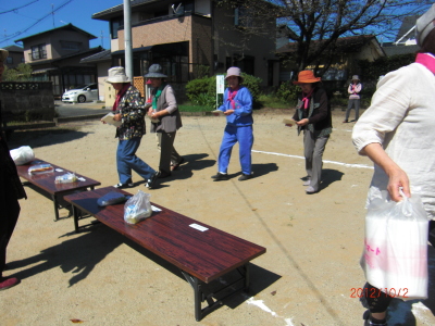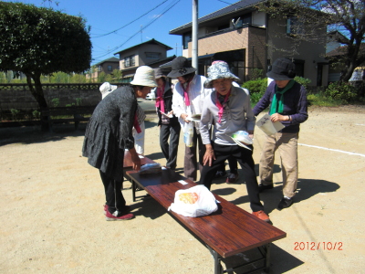 24年10月2日(火)、6町内女性の方のお待ちかね、毎年恒例となった「さわやか健康女性のつどい」が、公民館前広場で開催されました。