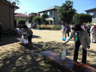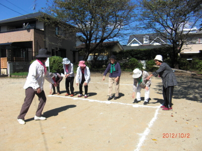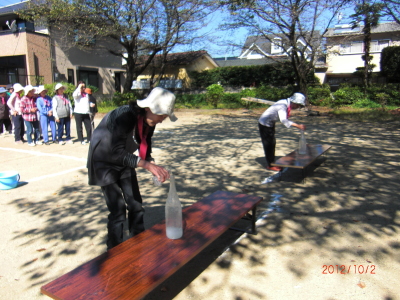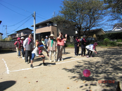 今回は52名の参加。数日後の校区の体育祭の予行演習も兼ねて、皆さんプログラムを思いっきり楽しんでおられましたよ。