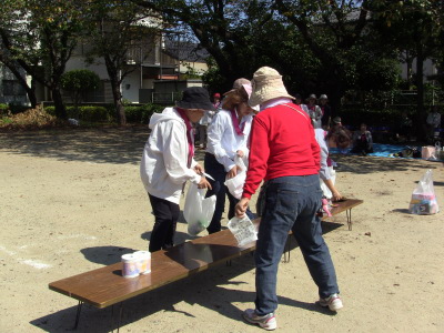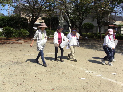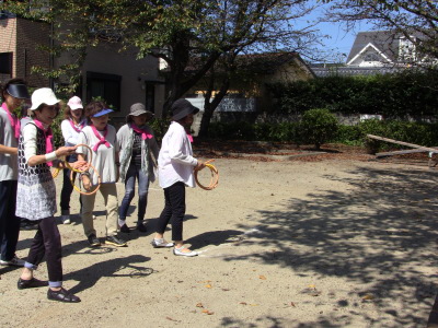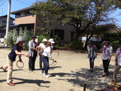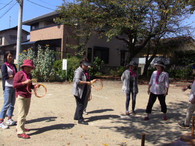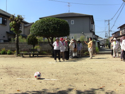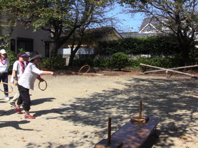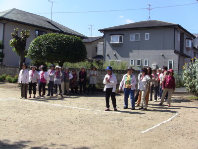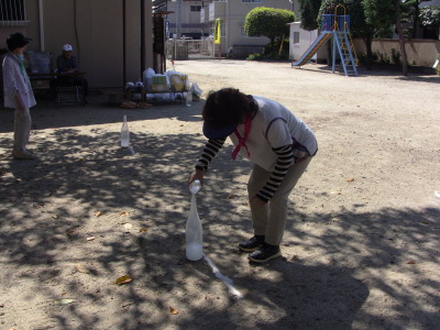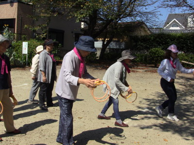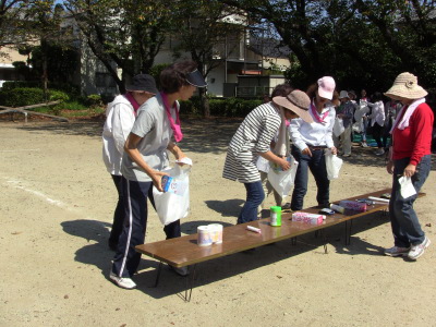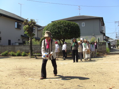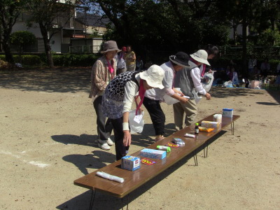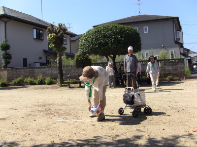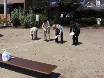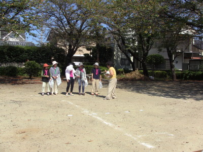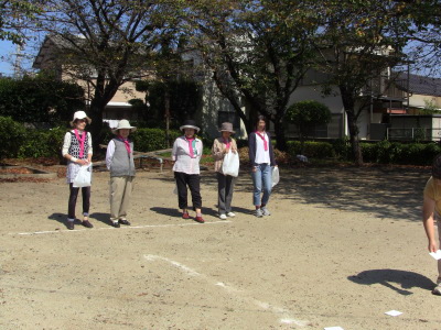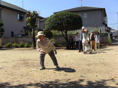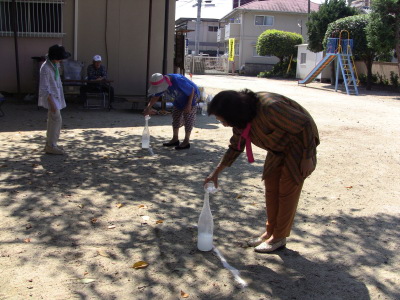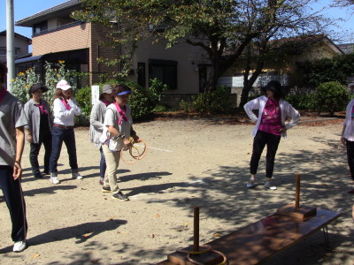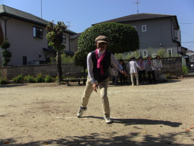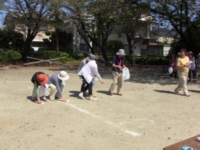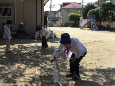 いつもの通り、数日後に校区の体育祭を控え、同じ種目の、防災訓練、びん倒し、輪投げなどのゲームは、成績によっては選手としての出場を依頼するかも、との自治会長のあいさつで、参加の皆さん真剣そのもの?、だったかな・・・