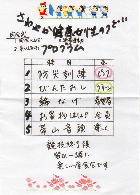 平成28年10月4日(火)、6町内婦人会秋の祭典、さわやか女性健康の集いが開催されました。