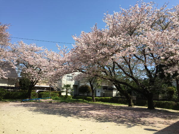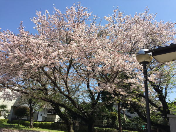 公民館がある町の広場は、今まさに桜があふれんばかりに咲き誇って、見事でした。