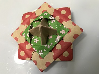 折り紙3枚を使用しますが、ちょっと手ごわい作業でしたよ。