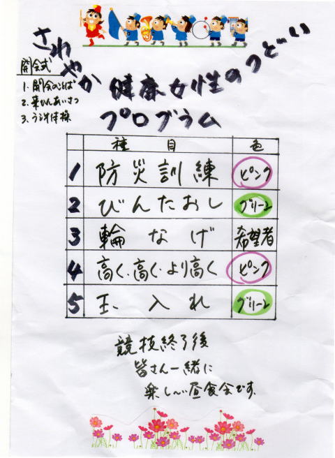 婦人会の主催ですが、このイベントだけは6町内にお住いの女性の方は誰でも参加していただくようにお誘いされています。