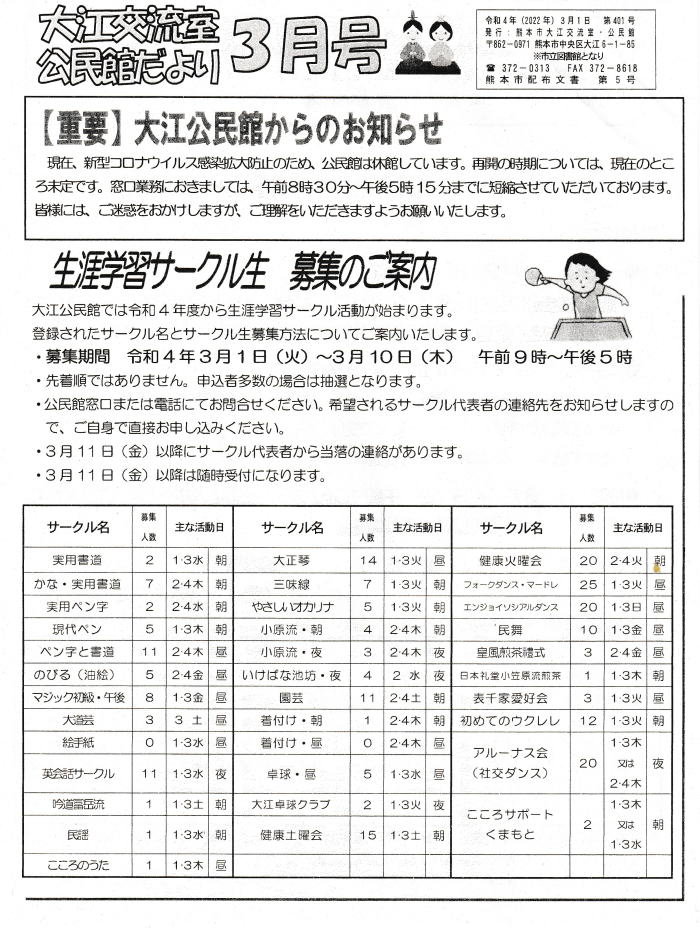 回覧板はゆっくり目を通したいと思っても、早く回さねばという思いで、気になる情報も流し読みで終わってしまうことがたびたびです。