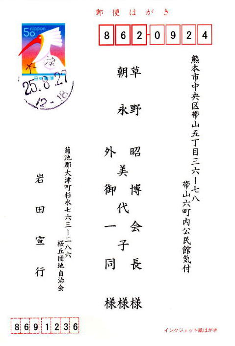 丁度カメラの調子が悪く写真がないのですが、その後お礼のハガキをいただきましたので、紹介します。