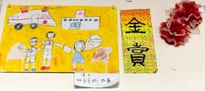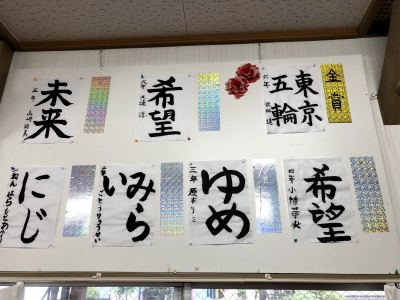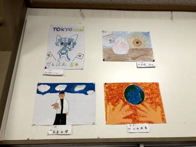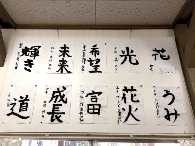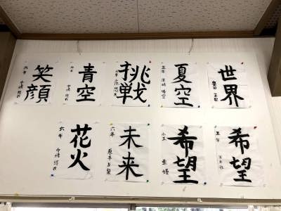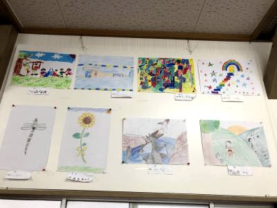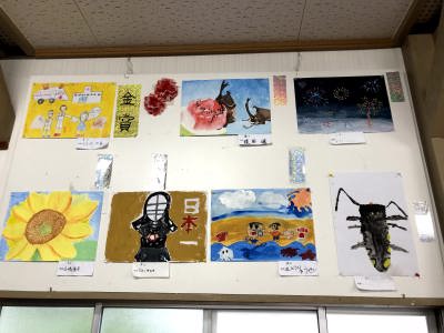 地蔵祭りに合わせて実施されている子ども会の皆さんの「書と絵画」の夏休み作品展は今年も行われ、審査を終えて公民館に展示されました。