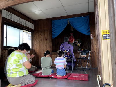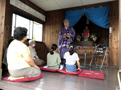 ただ地蔵堂での読経は例年に倣って、子ども会から数名のお友達とお母さん方、地域の方々の参加で執り行われました。