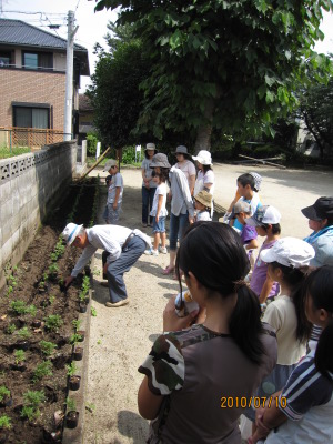 株と株の間隔を適度にあけて、横一直線に並べて、みんな上手にできました。