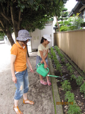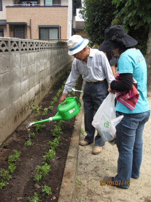 植えた後の水遣りも大事、みんなで協力してしました。