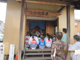 9時から三郎の地蔵尊で読経が始まり、公民館に移動して9時半から、子供会で作成したみこしと夏休みの作品展
