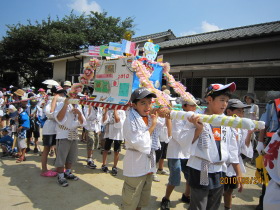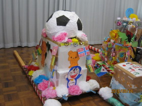 A班、B班、7町内の子供会ではみんなで協力して手作りのおみこしを作りました。どれも夢いっぱいあふれた楽しい