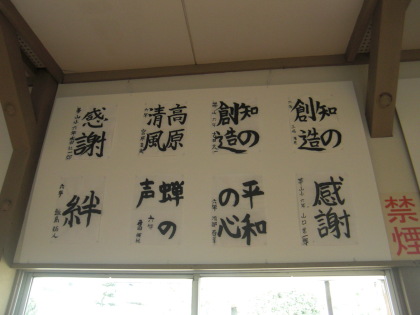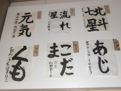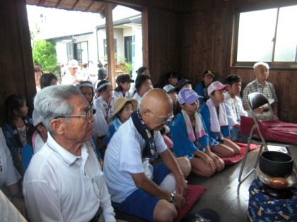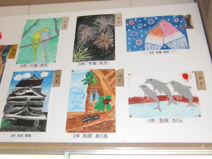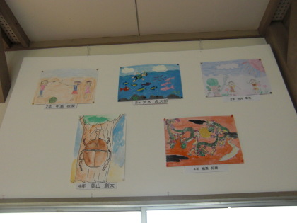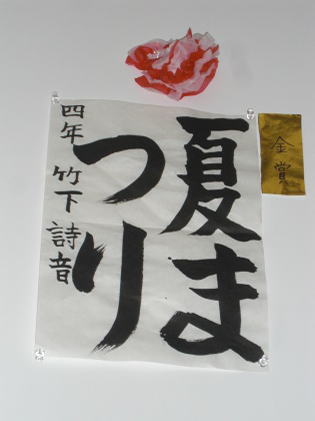 神輿行列が公民館に帰ってから、例年のように、夏休みの作品、書道と絵画の表彰式がありました。