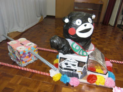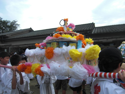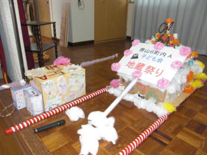 6町内のA・B、二つの子供会ではこの日のためにお母さん方の助けを借りながら手作りのお神輿を作りました。