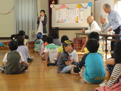 お楽しみ会のあとはお祝い記念品のプレゼントが6年生から新一年生に渡されました。
