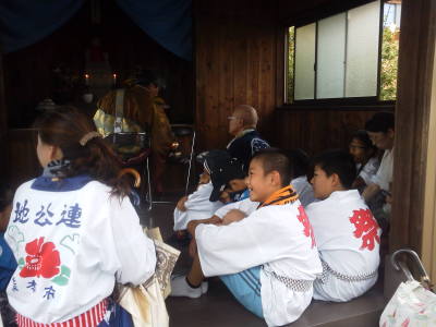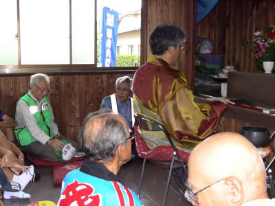 9時から地蔵堂で読経、そのあと9時40分ころから公民館を神輿が出発しました。
