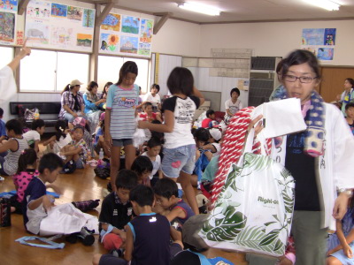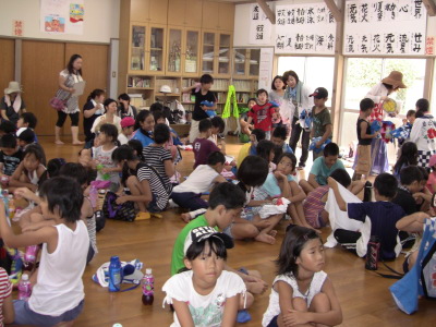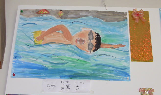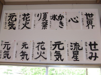 公民館に帰ってからは、夏休みに頑張った書道と絵の表彰式がありました。