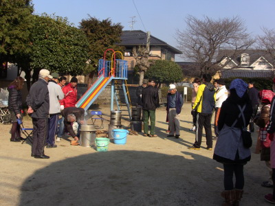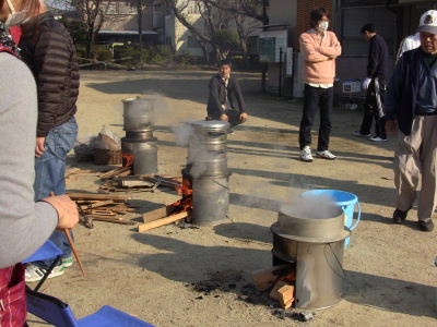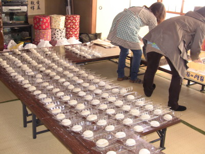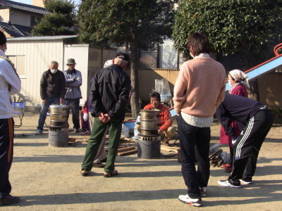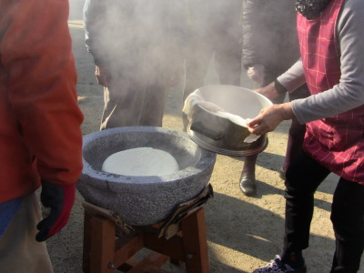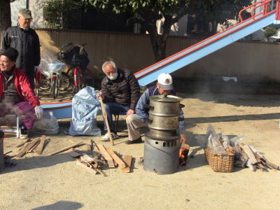 公民館前の広場で餅つきをするのでお天気が一番心配なのですが、今年も好天気に恵まれ、卒業を迎える