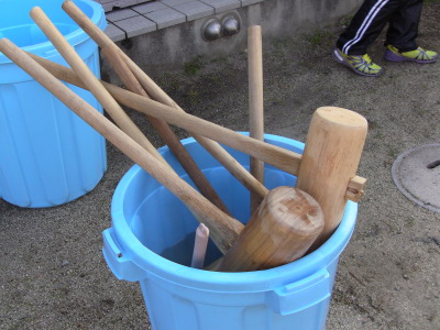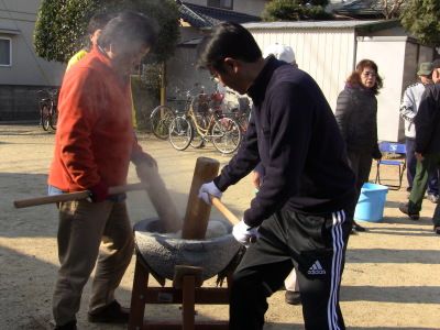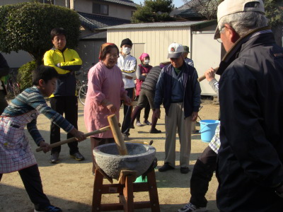 お友達は元気いっぱい重たい杵を振り上げていましたよ。