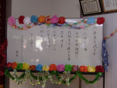 たくさんの餅がつき終わった後は、本番の「6年生を送る会」が始まりました。