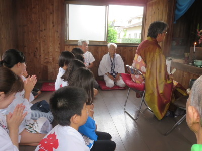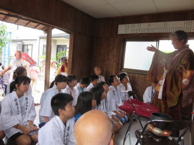 朝8時半、地蔵堂に子供会の代表と自治会の役員さん達が集まり、9時から広徳寺のご住職さんの読経が始まりました。