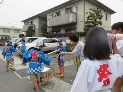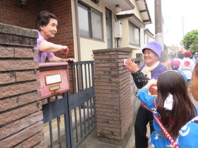 わっしょい、わっしょいの元気な掛け声が、おうちの中にいる人々にも届いたのでしょう、通りすぎてから