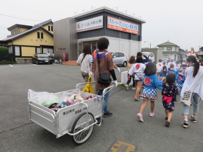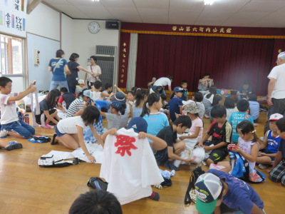 昨年が途中から雨になり、子供たちも汗と雨で濡れて帰りましたので、今年は何とかそんなことがなければいいのにと願っていました。曇り空で日照がない分いいかなと思っていましたが、湿度が高く、やっぱり大汗を書いてしまいましたね。後半過ぎてからポツリ、と落ちてきましたが、そのままひどくはならずに何とか無事公民館に戻ることが出来ました。