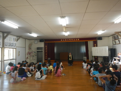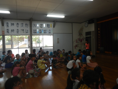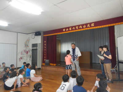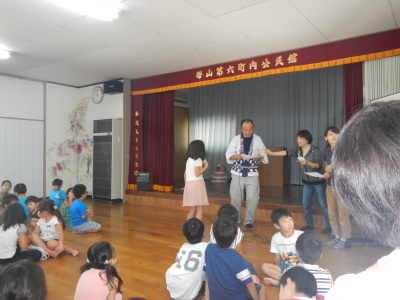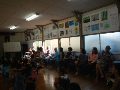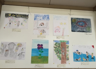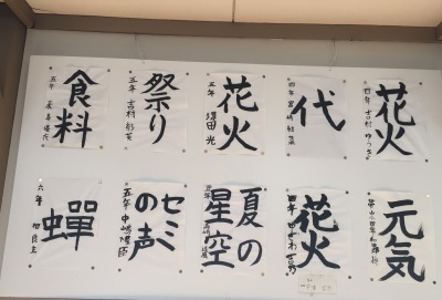 手作りの神輿を担いで町を練り歩くのが恒例となっていましたが、今年は地震の影響で2学期が早く始まることなどから神輿行列は見送られました。地蔵堂へのお参りと絵画と書の作品の表彰は例年通り行われました。今年も力作がずらり出そろいました。公民館に展示されていますので、是非ご覧になってください。