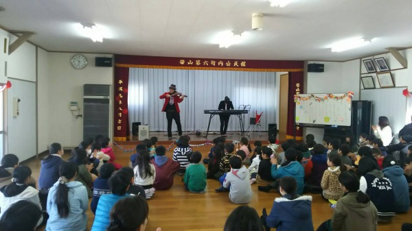 生演奏は子供たちも聞き入って、自然と手拍子をしたり、最後にアンコールで弾いてくださったビリーブでは