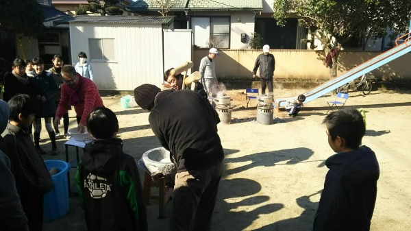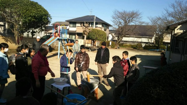 餅つきはお父さんと一緒にされていたお友達もおられました。