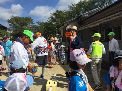 読経が終わってすぐに公民館に移動、広場で待っていたたくさんのお友達と合流して神輿行列出発を待ちました。行列の模様は動画でご覧ください。
