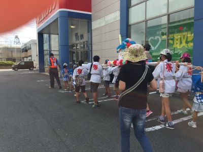 町内を巡回しました。途中、女子大前サンシャインとゆめタウン帯山店の駐車場を休憩場所として提供していただき、水分補給です。女子大前サンシャインさんにはいつも屋内に入らせていただき、炎天から逃れてほっと一息します。雨の時も助けられたことがあります。ありがたいことです。
