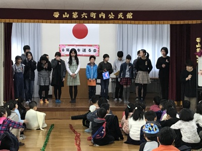 平成31年2月24日(日)、恒例となった「6年生を送る会」が6町内公民館で開催されました。