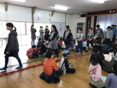 今年のお楽しみ会はビンゴゲーム、6年生在校生一緒になって楽しみました。